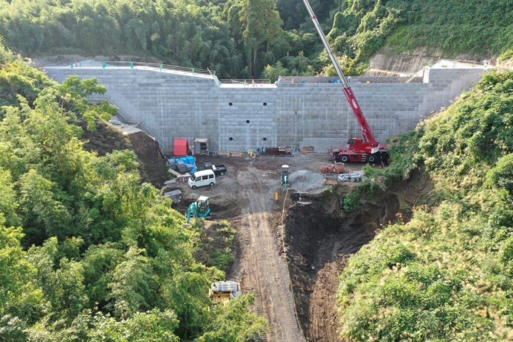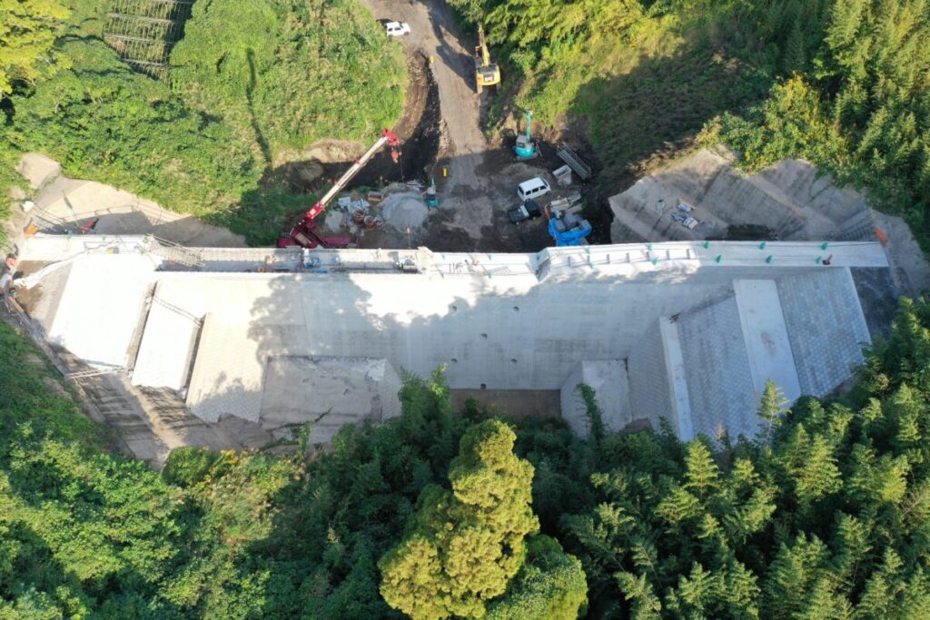 火山砂防工事(西道の谷補正R6-1工区)の10月末工事進捗状況写真です