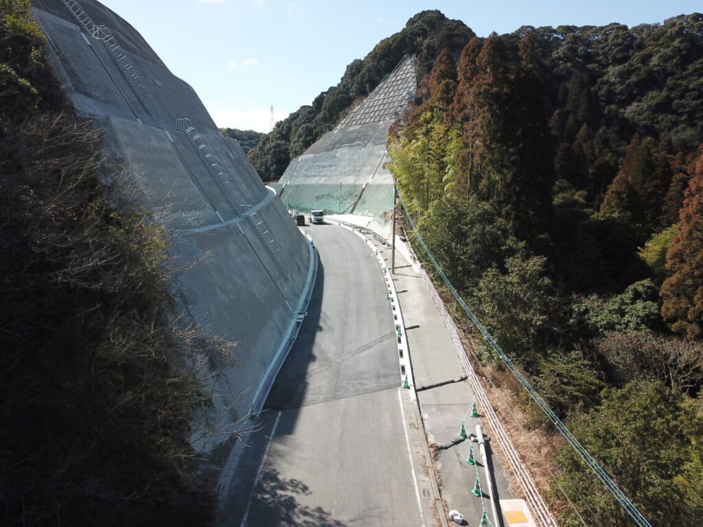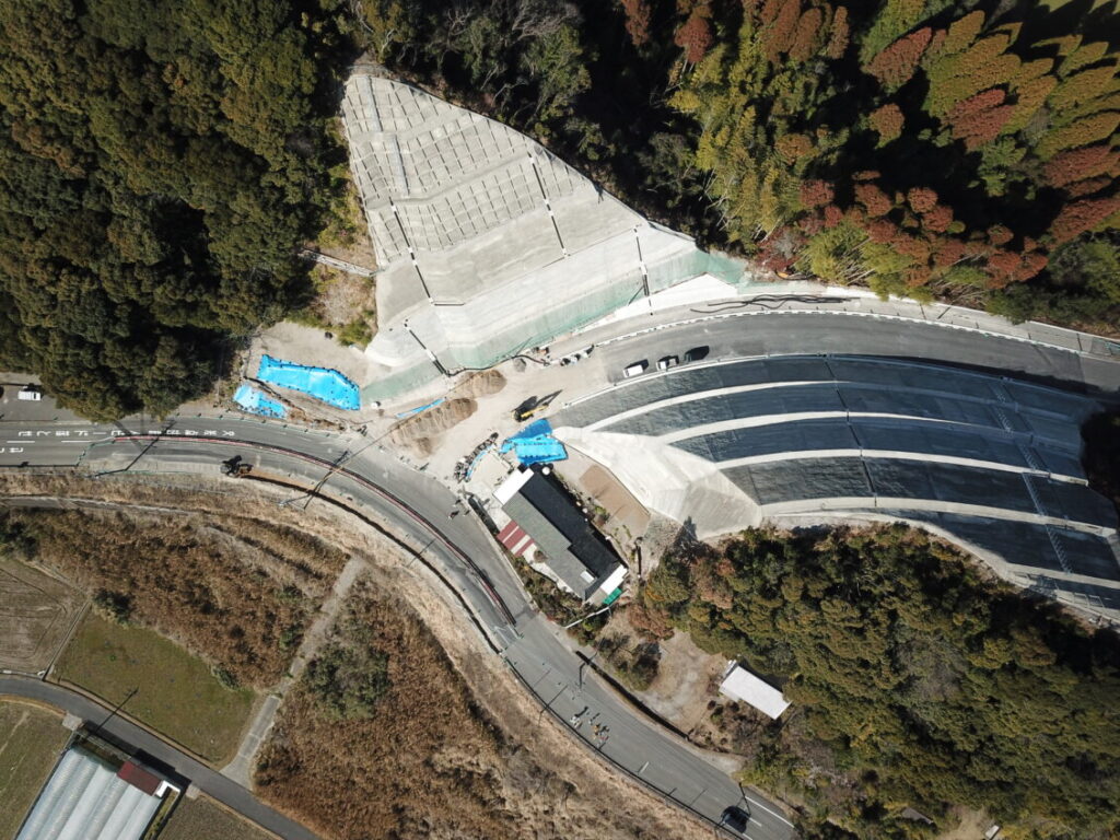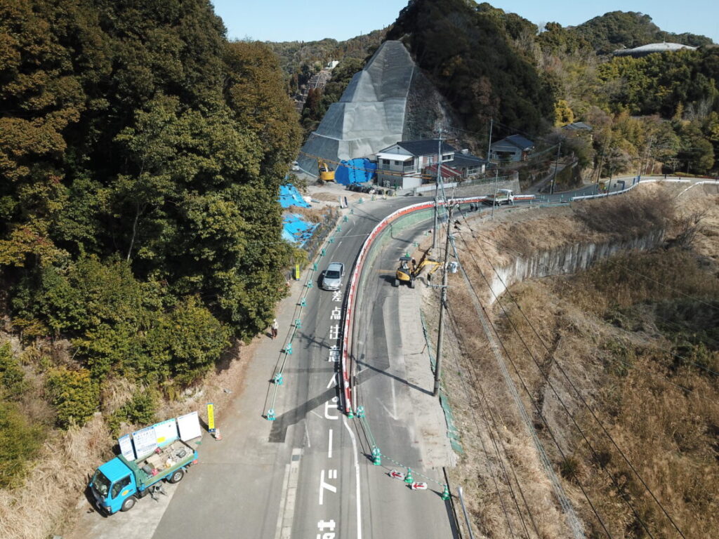 下門仲組線道路改良工事(その8)R8.2月末の工事進捗状況です 2026.03.05 下門仲組線道路改良工事(その8)R8.2月末の工事進捗状況写真です 現在、主道路を完成形にする施工をし、3月中旬からは終日片側交互通行の規制帯を切り替える予定です 1.空撮全景 2.空撮(主道路) 3.空撮(従道路)